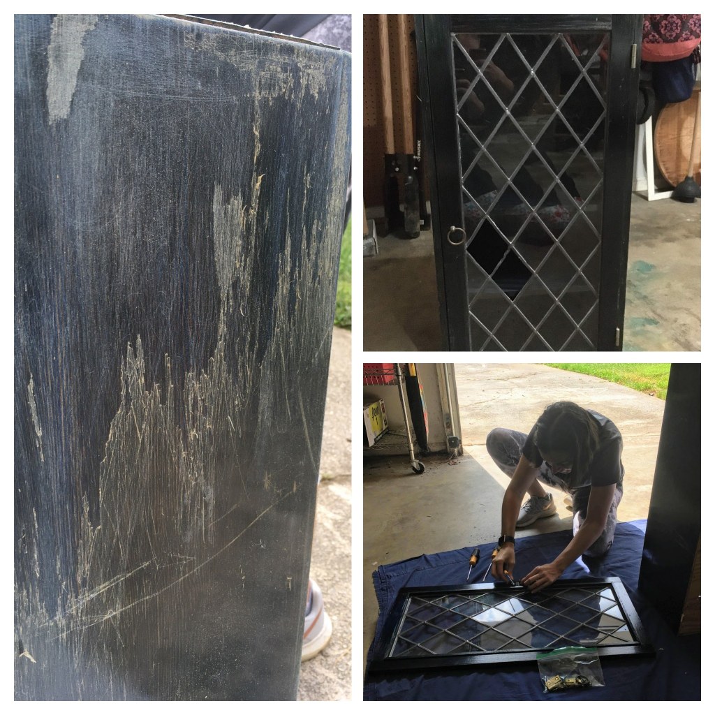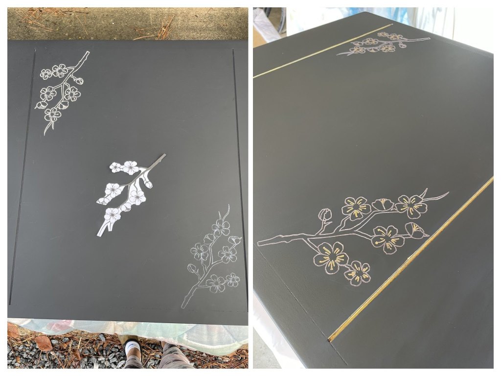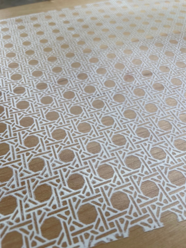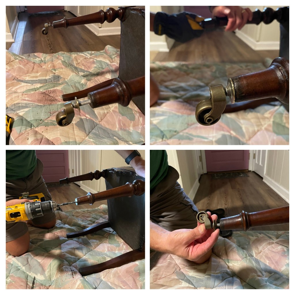 Once the table top had been repaired I routed the edge of the reinforcing wood ring, removed all the old finish and stained both the top and the new wood ring with Rust-Oleum American Walnut stain followed by Varathane Dark Walnut stain.