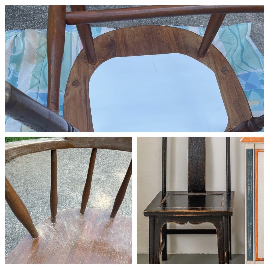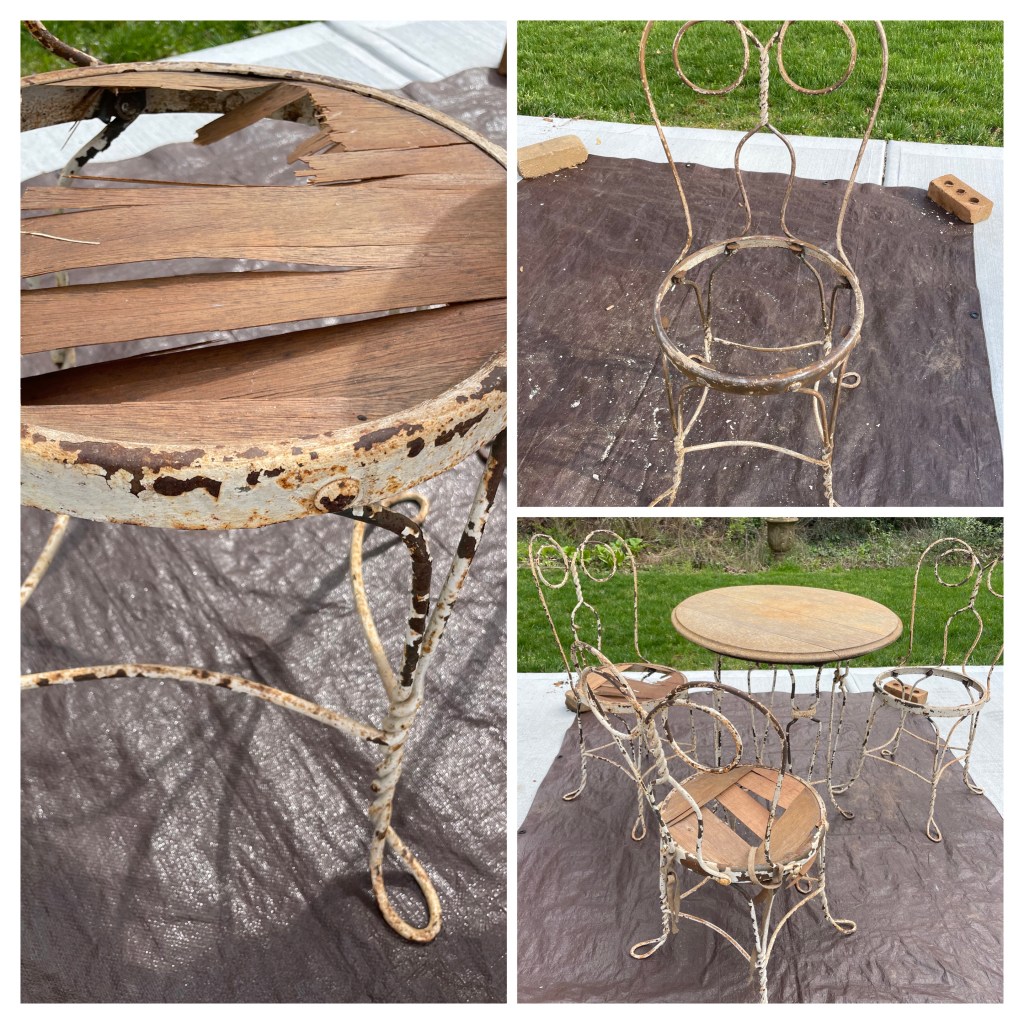 A friend asked if I wanted to transform this table and three chairs she was getting rid of. I didn’t hesitate to accept. Even though they were in a bad way, they have a charm I couldn’t resist. I’ve always loved bistro-type sets; they conjure up visions of outdoor dining in romantic European cities. It was only when I started work on them that I discovered they are 130+ years old and are a true gem.
