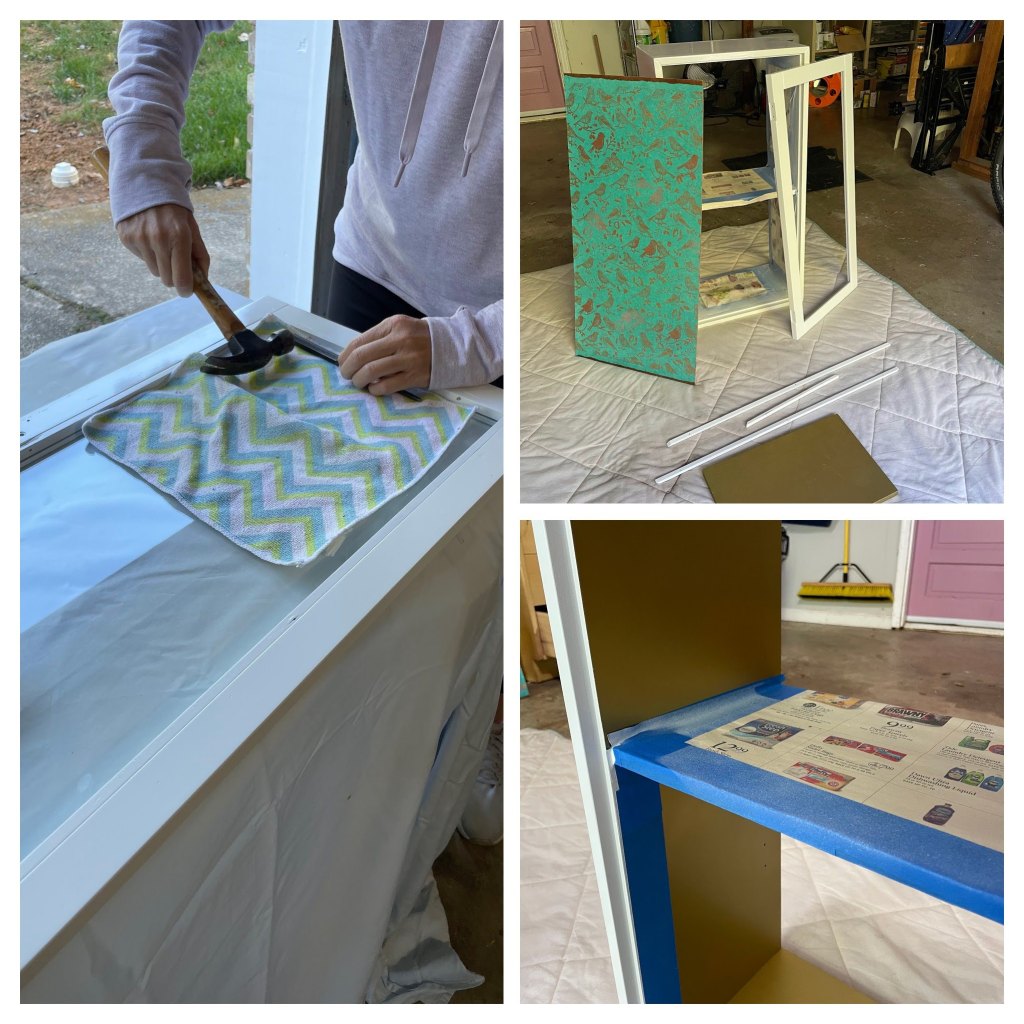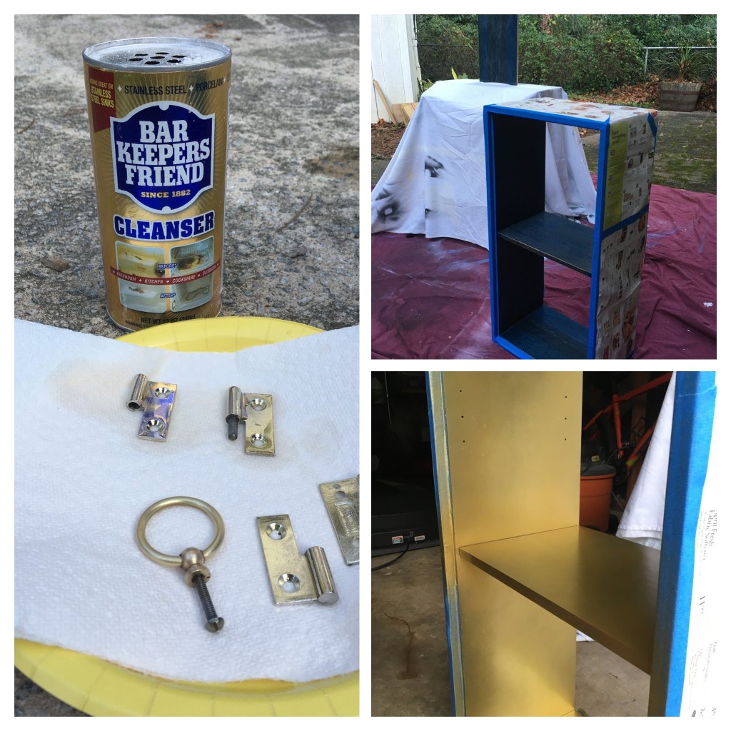 Materials used: Rust-Oleum American Walnut stain, Varathane Dark Walnut stain, Rust-Oleum Rust Reformer, 1/4″ plywood, 1″ x 6′ red oak board, Rust-Oleum Satin Protective Enamel, Shellac, Varathane oil-based polyurethane.