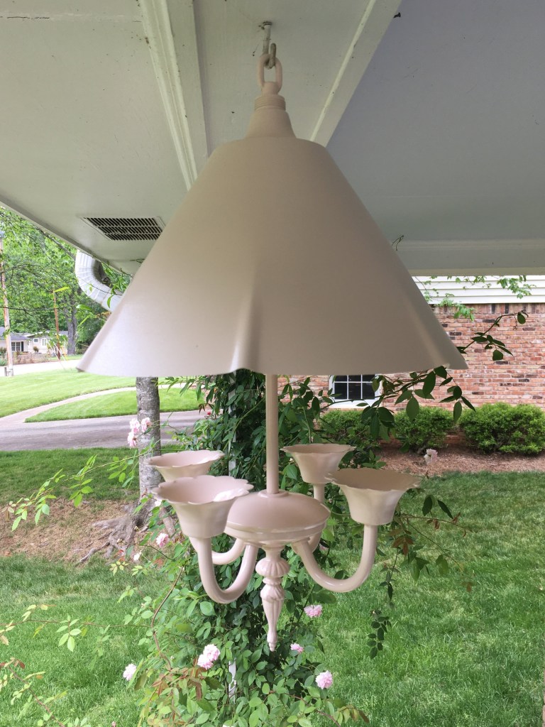 Once the chairs and table were re-assembled I applied 3 coats of Rust-Oleum Protective Enamel in shell white satin finish to all the metalwork.